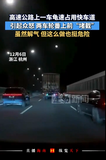 【高速公路上一车龟速占道引众怒】近期,一段在湖南某高速公路上的行车记录仪视频引发广泛关注。视频中,两辆“龟速车”并排行驶,完全阻塞了通行,任凭后车如何鸣笛、闪灯提醒,它们都无动于衷。最终,一辆被堵的后车冒险从右侧超车后,采取了急刹车的方式“教训”前车,尽管这种危险的“路怒”行为引发争议,它却是高速公路上长期存在的“龟速”行驶乱象的一个缩影。