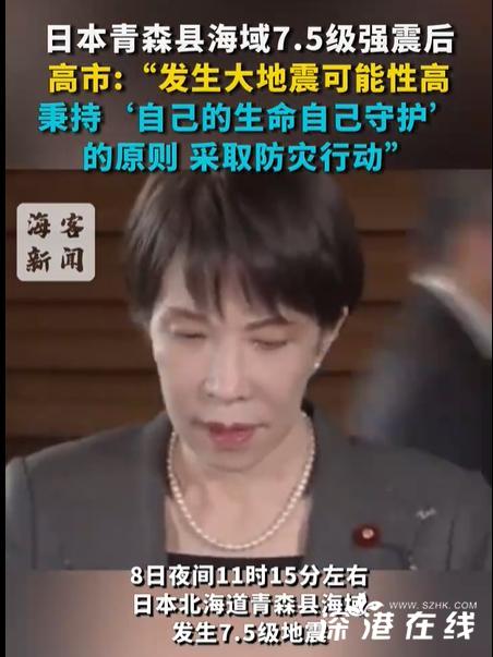 【日本发生7.5级强震后 高市早苗发声】12月8日,日本青森县海域发生7.5级地震。日本首相高市早苗表示:这次地震后北海道到三陆近海一带发生大规模地震的可能性高,是否真的会发生大规模地震尚不确定。高市早苗称,目前报告显示有30人在地震中受伤,1处住宅发生火灾。这次地震后,北海道到三陆近海一带发生大规模地震的可能性比平常更高。是否真的会发生大规模地震尚不确定,大家必须充分理解这一点,并基于“自己的生命由自己守护”的原则采取防灾行动。地震发生后,日本气象厅迅速发布海啸警报,北海道至岩手县沿岸地区紧急疏散。岩手县久慈港观测到70厘米高海啸,青森县八户市12人受伤,保育园火灾、道路开裂、核废料池水溢出等次生灾害接连发生。截至9日凌晨,超过10万民众接到避难指令,东北新干线停运,青森县3900户停电,岩手县300户断电。更令人揪心的是核安全风险。位于青森县六所村的核废料处理厂因地震晃动导致乏燃料池水溢出超100升,虽未外泄,但暴露出日本核设施的脆弱性。东京电力公司紧急暂停福岛第一核电站核污染水排海作业,这一决定与高市早苗政府此前强推的排海计划形成讽刺对照。在这场危机中,高市早苗的表现成为全球焦点。韩国媒体捕捉到她小跑进入官邸危机管理中心的画面,脸上难掩慌张。尽管她随后发表声明,呼吁国民“秉持‘自己的生命自己守护’原则行动”,但这种“甩锅式”表态与日本作为地震多发国应有的成熟防灾体系形成鲜明对比。高市早苗的危机应对,与其近期政治操弄形成荒诞呼应。这位以“反华强硬派”形象崛起的日本首相,近期因涉台错误言论引发中方严正警告。国台办、外交部、国防部三部门罕见联合发声,直指其“台海武力干预”言论是对中国主权的严重挑衅。然而,面对中方划出的红线,高市早苗非但未收敛,反而继续炒作“台湾有事即日本有事”,甚至将地震危机转化为政治表演的舞台。