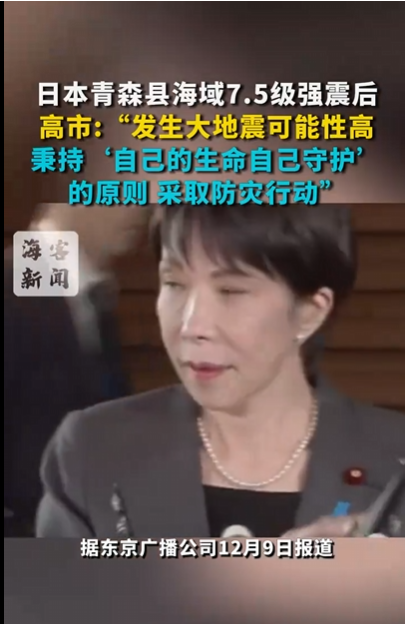 日本发生7.5级强震后 高市早苗发声 历史上首次发布“北海道和三陆近海后发地震提醒信息”!