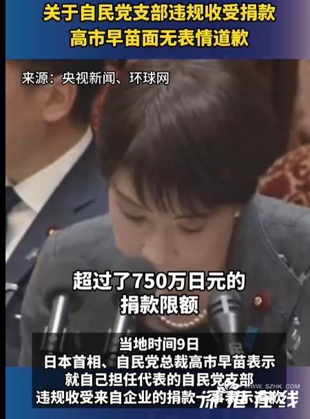 【高市早苗面无表情道歉】当地时间12月9日,日本首相、自民党总裁高市早苗面无表情地表示,就自己担任代表的自民党支部违规收受来自企业的捐款一事深表抱歉。日本神户学院大学教授上脇博之4日向检察机关控告高市早苗涉嫌违规收受企业的政治捐款。根据控告文件,高市担任代表的“自民党奈良县第2选举区支部”2024年从东京一家企业处收受了1000万日元的捐款(约含45万日元人民币)。但根据日本《政治资金规正法》该企业按其注册资本规模全年可捐款上限为750万日元,收到控告的包括高市本人,其所属支部的会计负责人以及相关企业代表。高市早苗道歉,超过了750万元日元的捐款限额,这笔1000万日元的捐款是误捐。作为该支部代表我深感抱歉。镜头捕捉到的画面中,她神情木然、语气机械,这场“面无表情道歉”迅速引发舆论哗然。从自民党“黑金”丑闻的余波未平,到高市早苗内阁的用人争议,这场道歉背后折射出的,是日本政治生态的深层病灶。这并非孤立事件。就在控告前一日,上脇博之还向横滨地方检察院检举防卫大臣小泉进次郎所属支部,指控其于2024年12月违规收取大阪府某企业1000万日元捐款,超限金额同样为250万日元。两起案件的作案手法如出一辙,暴露出自民党基层组织长期存在的资金监管漏洞。