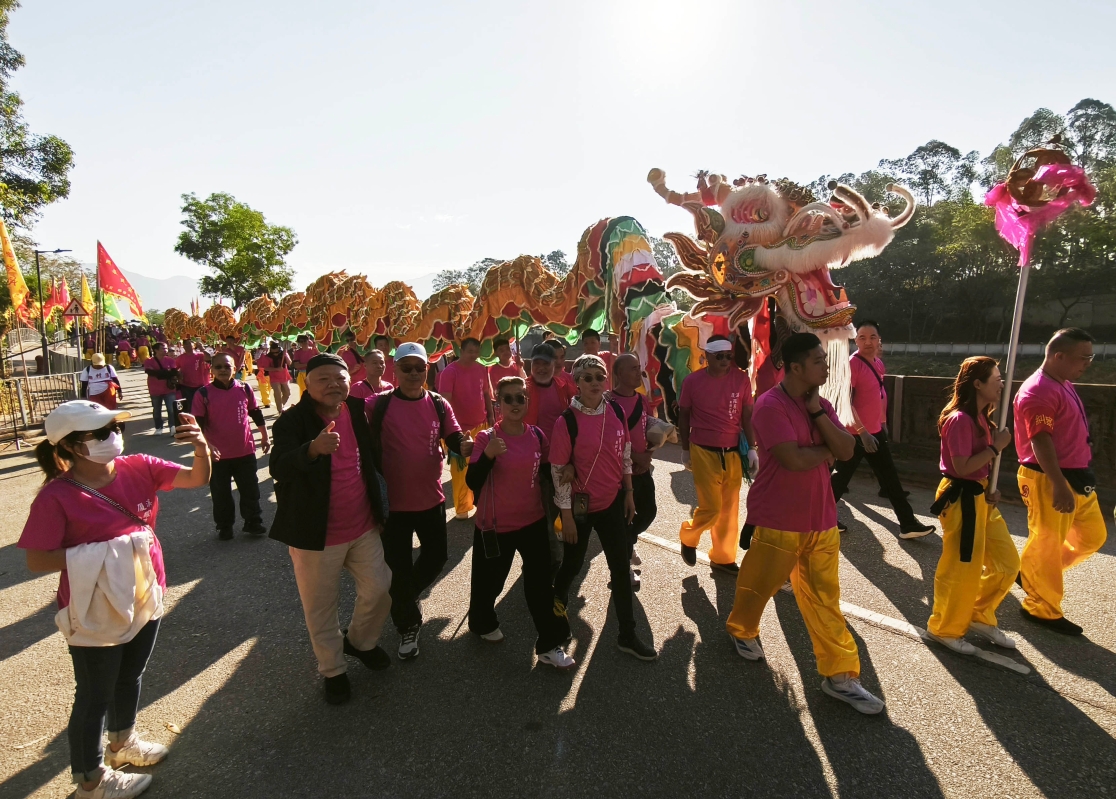 香港新闻网12月16日电(记者洪少葵)12月16日上午,香港新界厦村乡邓氏祠堂前锣鼓喧天,金龙起舞,热闹欢腾。众乡亲启程赶赴锦田参加传统盛世。