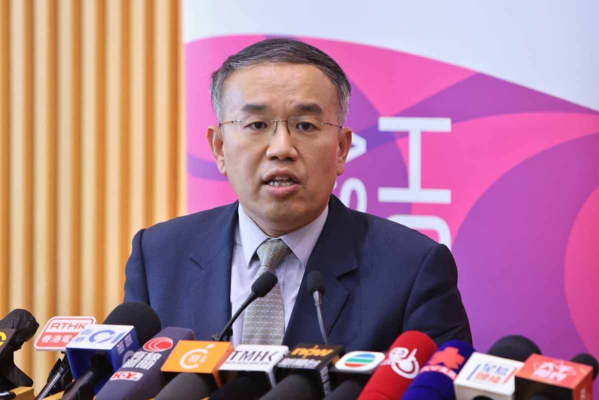 资料图为财经事务及库务局局长许正宇会见传媒。香港中通社图片