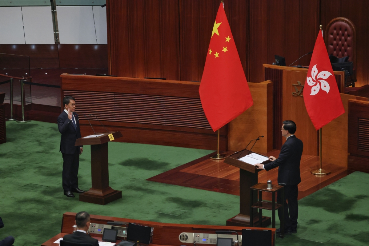 香港新闻网1月日电(记者 谢光磊 ) 1月1日上午11时,香港特区第八届立法会候任议员宣誓仪式于立法会综合大楼会议厅举行,并由行政长官李家超为议员监誓。