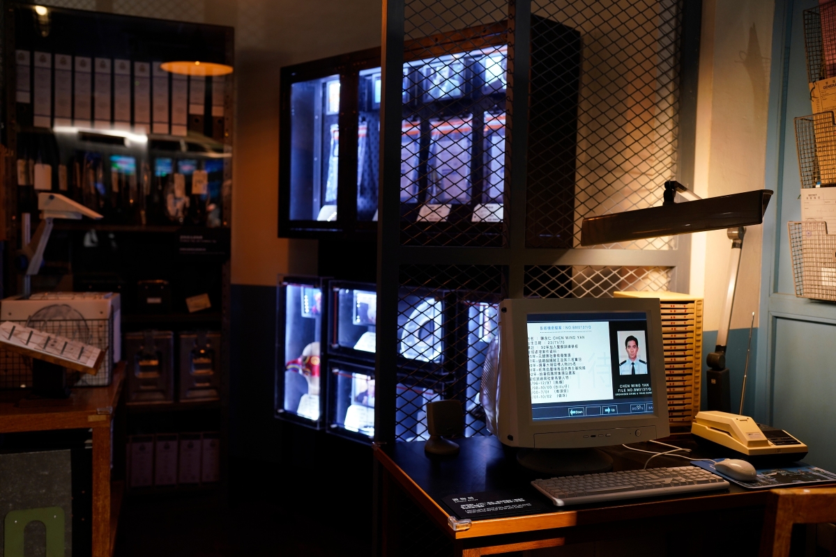 展览设有四大场景,包括“戏院门口”、“时光隧道”、“杂差房”和“羁留室”,让访客穿越至电影拍摄现场,体验认人室、枪房、监控室等。展区还融入了多媒体展示、灯光设计及互动体验装置及AI照相亭等。