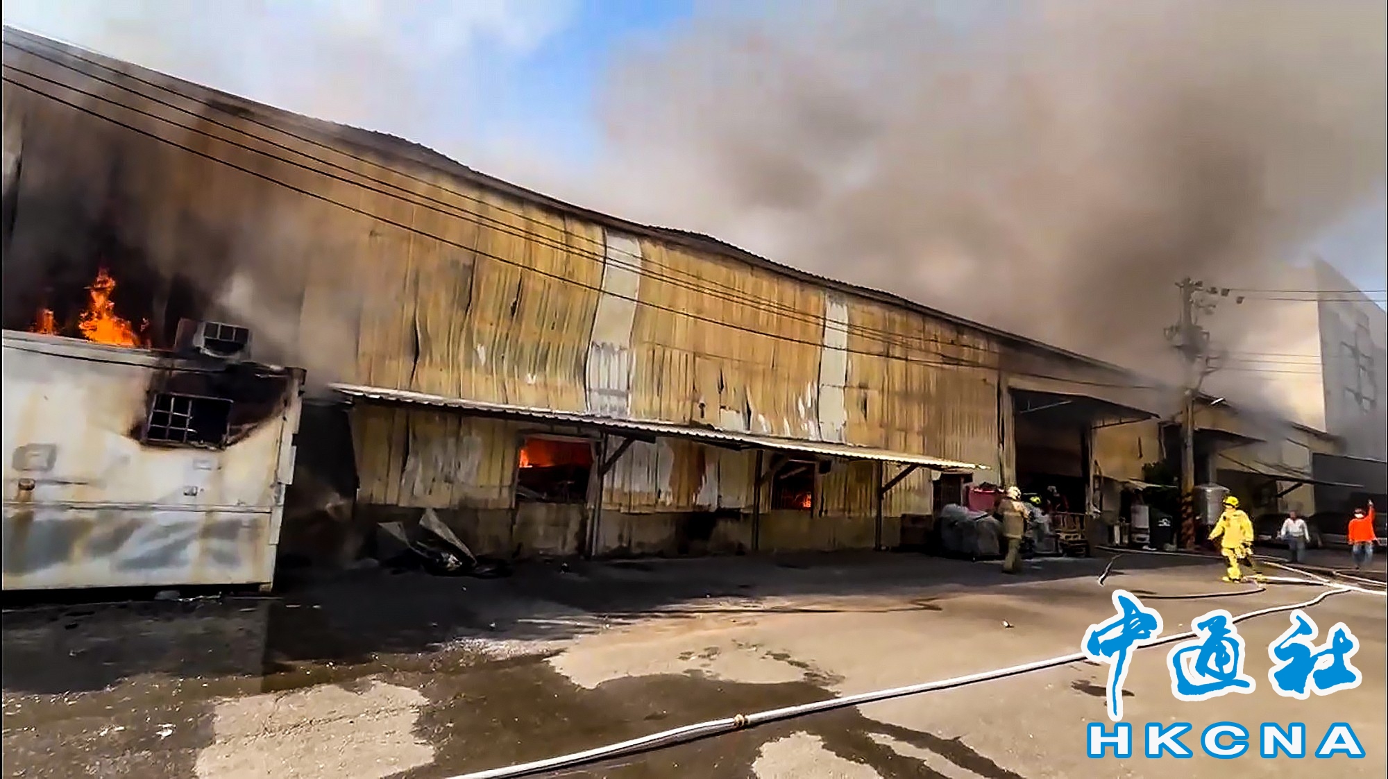 1月14日下午,台湾台南市安南区安和路二段318巷一间金属抛光工厂一楼发生火警,由于火势太大,延烧隔壁汽车零件工厂、烟熏另一间锅具仓库,所幸无人伤亡,消防员耗时约90分钟扑灭火势。香港中通社图片