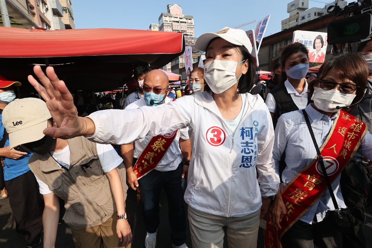 资料图为高雄市市长候选人柯志恩(中)。香港中通社图片