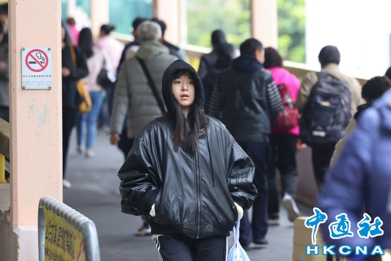 2月8日,香港气温明显下降,市民穿冬衣出行。香港中通社资料图