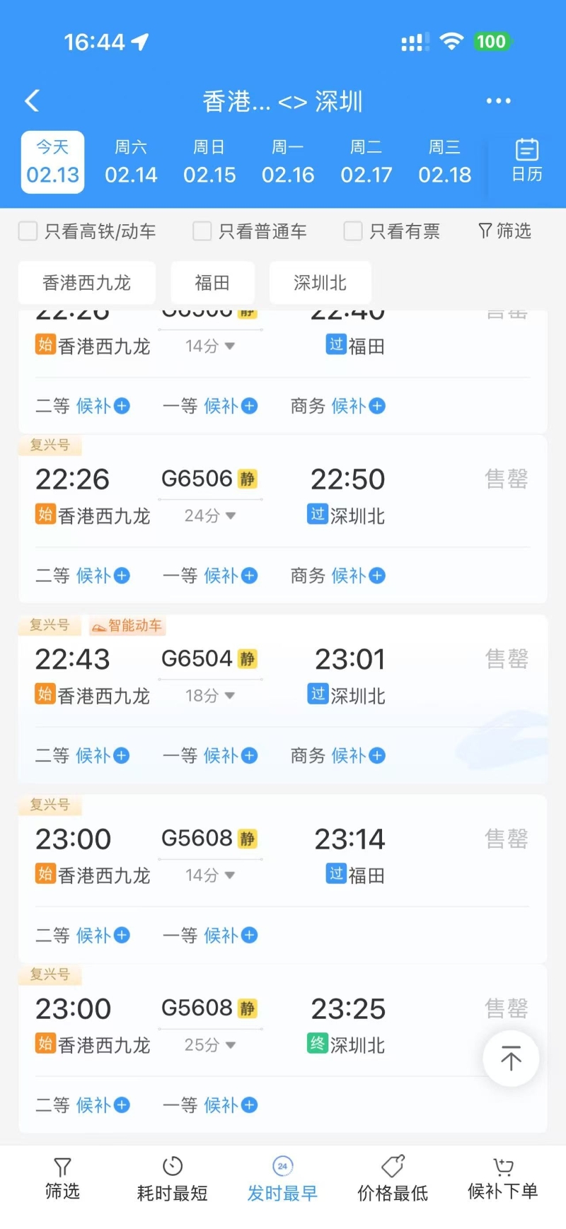 香港新闻网2月13日电 (记者 张明臻)农历新年将近,香港打工人返乡高峰13日晚开始。“港漂”梁先生对记者表示,回东莞的票本就没买到,本来想先回深圳,再从深圳开车回东莞老家,结果13日下午看票的时候,才发现所有回深圳的高铁票也已经都售罄了。