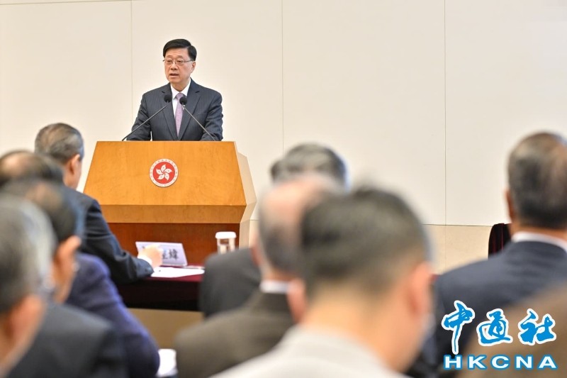 2月14日,香港特区行政长官李家超在《“一国两制”下香港维护国家安全的实践》白皮书专题研讨会致辞。香港中通社图片