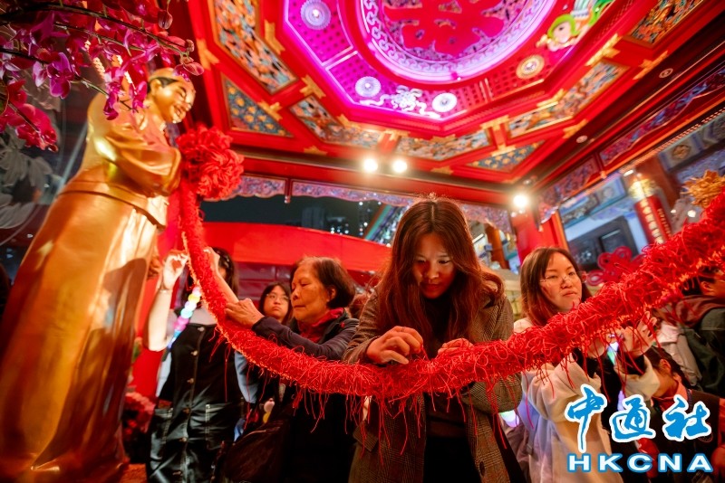 香港新闻网3月3日电(记者 陈奕启)3月3日,香港黄大仙祠元宵晚会,众多善信到临今年初重光的新建月老殿参拜,祈求天赐良缘,元宵节当晚更设有特色打卡位及派发福物,与大家共庆佳节。