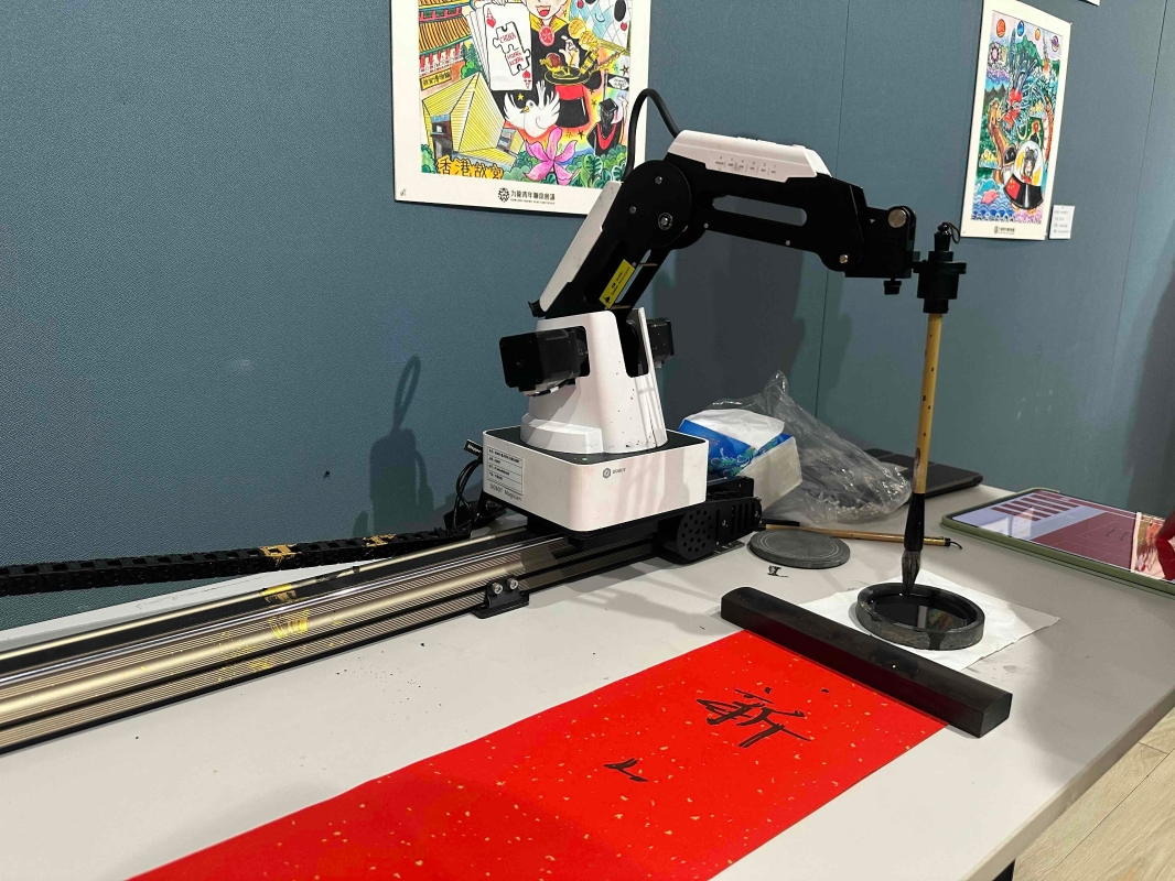 本次启动礼首次在香港青少年文化活动中引入机器人元素,除了会舞狮的机器人,还有写得一手好书法的机器人现场写毛笔字。吸引了现场学生频频合影、体验。